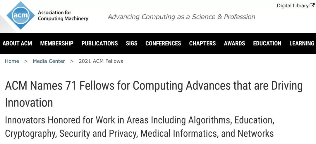 当地时间2022年1月19日,国际计算机协会(Association for Computing Machinery)官网发布公告,宣布了2021年当选ACM Fellow的71名成员。